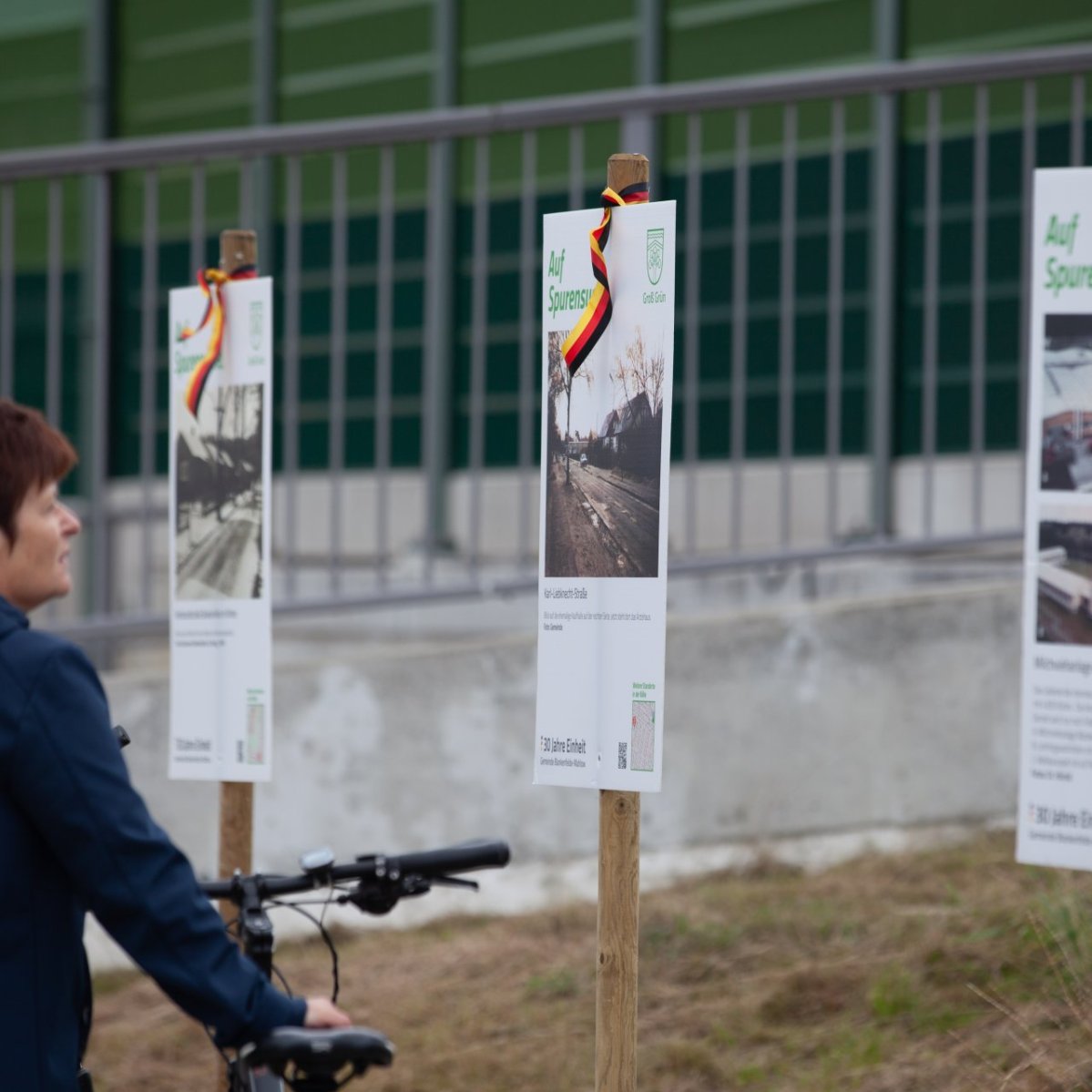 Eine willkommene Gelegenheit, sich miteinander auszutauschen und sich gemeinsam zu erinnern, bot ein Auszug der vor fünf Jahren erstellten Bilderreihe "Auf Spurensuche", die Orte unserer Gemeinde zur Wendezeit zeigt. Die Bildertafeln sind noch bis Mitte Oktober in der Heimstättenstraße zu besichtigen. Ebenso gut besucht war eine weitere Outdoor-Ausstellung, die einen umfassenden geschichtlichen Abriss von der Teilung Deutschlands bis zum Mauerfall gab. Höhepunkt des Einheitsfestes war sicherlich das Feuerwerk am Freitagabend, das viel Lob und Applaus erhielt.