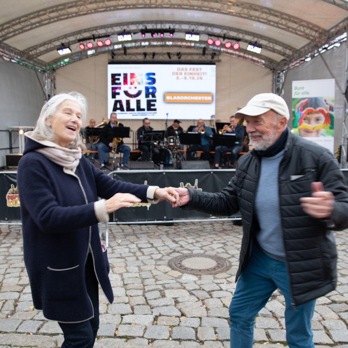 "Der 3. Oktober 1990 stellte eine Zeitenwende dar. Es waren damals mutige Menschen, aus unserer Mitte, die sich friedlich aber bestimmt gegen Unfreiheit und Kontrolle zu Wehr gesetzt haben. 35 Jahre später ist diese hart erarbeitete demokratisch-freiheitliche Grundordnung in großer Gefahr. Es ist daher höchste Zeit sich zusammenzuraufen und endlich die Vernunft regieren zu lassen. Wir als Deutsche und Europäer können ein weiteres Mal Vorbild sein, indem wir uns vehement aber gewaltlos gegen die Spaltung der Gesellschaft einsetzen. So wie heute hier auf unserem Fest der Einheit."
